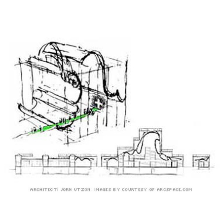 Utzon的輪廓可以清楚地說明,它的靈感來自于躺在陽光下的夏威夷沙灘上觀看信風(fēng)云的形成。