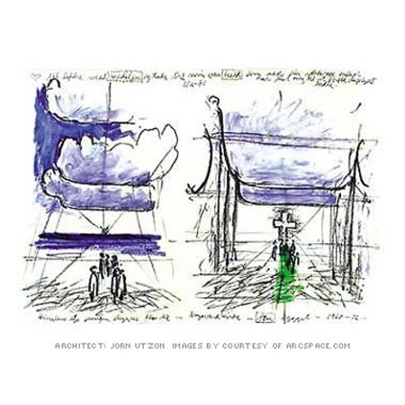 Utzon崇拜伊斯蘭書法的流暢,將其體現(xiàn)在教堂大樓的天花板上。
