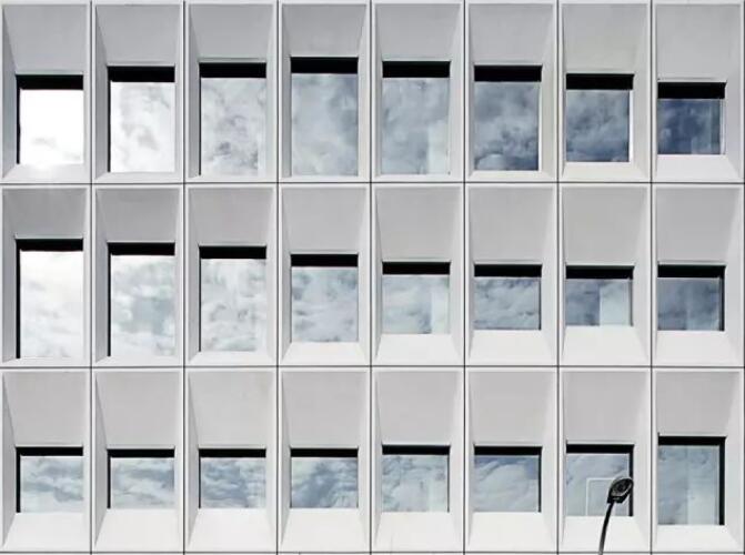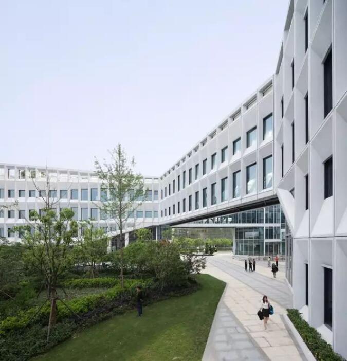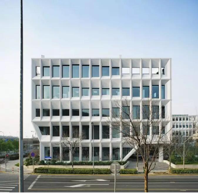 每個屏板由GRC(玻璃纖維混凝土)材料制成,使用阿爾博?牌52.5級白水泥,去皮露出白色骨料,整個幕墻的屏板多達千個,運用數(shù)字化算法對單元格進行邏輯分析形成幕墻優(yōu)化方案,使得最終用26種單元屏板就能組成整體立面上的變化,并貫穿幕墻施工深化和施工過程。每個屏板也是集合外圍護、采光、遮陽、通風、夜景照明為一體的立面構(gòu)件,先在工廠里預制組裝,然后將組裝好的屏板運輸?shù)浆F(xiàn)場、吊裝裝配起來。通過4個1:1大小的mock up屏板兩年時間的風吹日曬實驗,清潔度和精密度還保持很高的水準,之后才對整個幕墻進行裝配式建造。